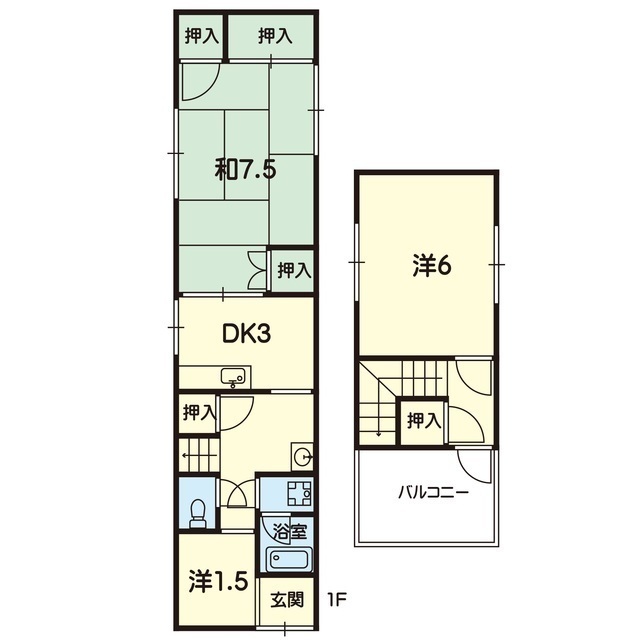 | 間取 | 2SDK ( 和 7.5帖 / 台所 3帖 / 洋 6帖 ) |
