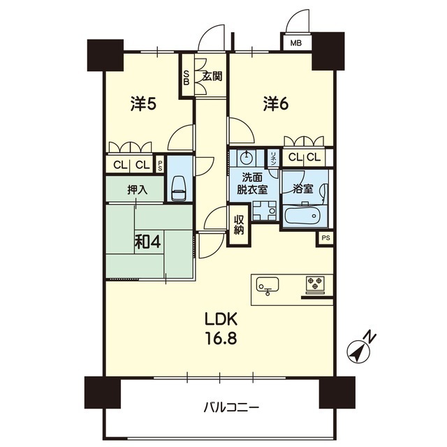| 間取 | 3LDK ( LDK 16.8帖 / 洋 6帖 / 洋 5帖 / 和 4帖 ) |
