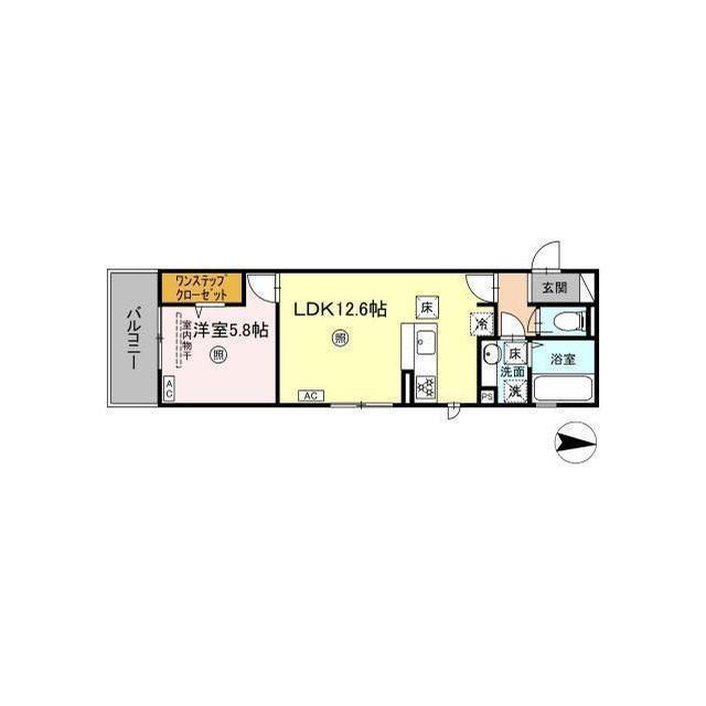 | 間取 | 1LDK ( LDK 12.6帖 / 洋 5.8帖 ) |