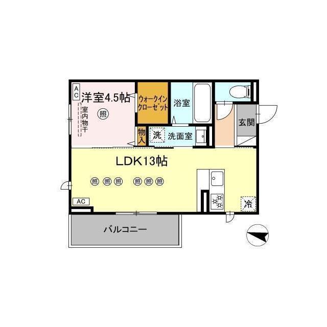 間取 | 1LDK ( LDK 13帖 / 洋 4.5帖 ) |