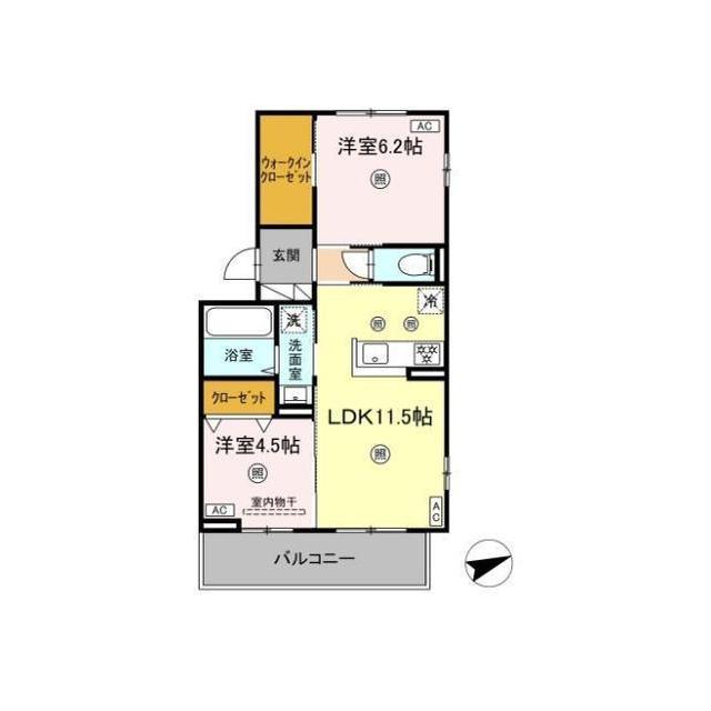 | 間取 | 2LDK ( LDK 11.5帖 / 洋 6.2帖 / 洋 4.5帖 ) |