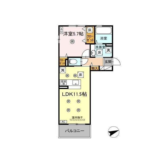 | 間取 | 1LDK ( LDK 11.5帖 / 洋 5.7帖 ) |