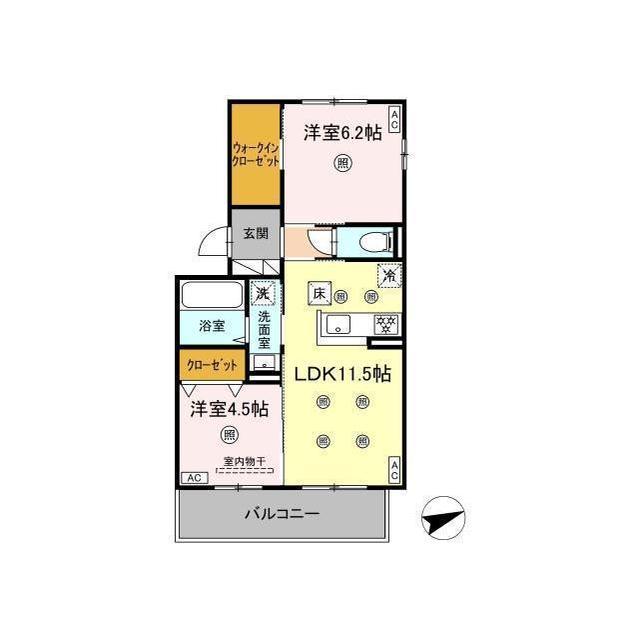 間取 | 2LDK ( LDK 11.5帖 / 洋 6.2帖 / 洋 4.5帖 ) |