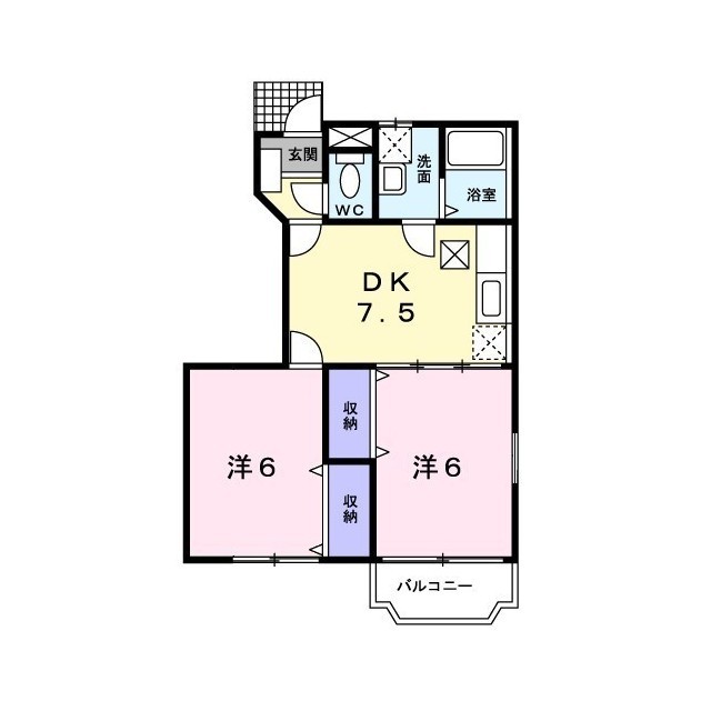 | 間取 | 2DK ( DK 7.5帖 / 洋 6帖 / 洋 6帖 ) |