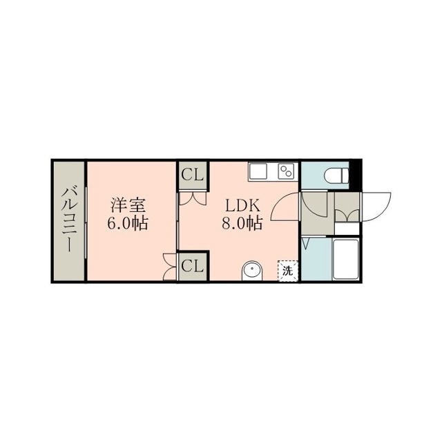 | 間取 | 1LDK ( LDK 8帖 / 洋 6帖 ) |