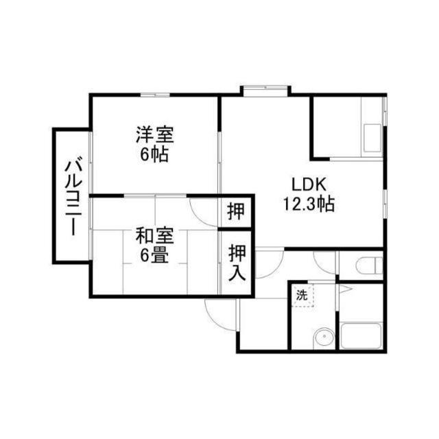 | 間取 | 2LDK ( LDK 12.3帖 / 和 6帖 / 洋 6帖 ) |