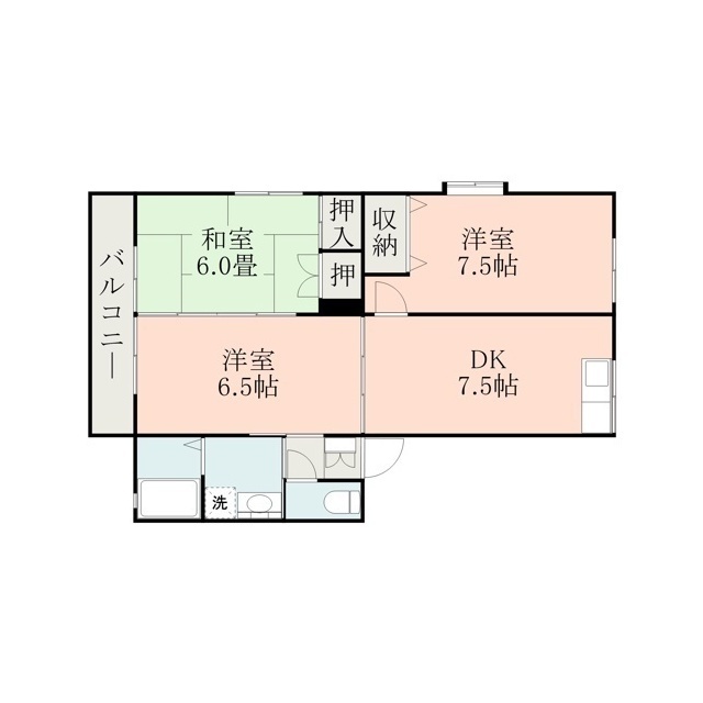 | 間取 | 3DK ( DK 7.5帖 / 洋 7.5帖 / 洋 6.5帖 / 和 6帖 ) |