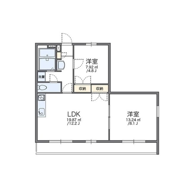 | 間取 | 2LDK ( LDK 12.2帖 / 洋 8.1帖 / 洋 4.8帖 ) |