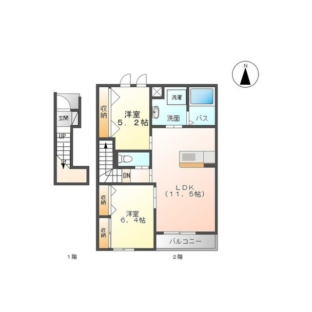 | 間取 | 2LDK ( LDK 11.5帖 / 洋 6.4帖 / 洋 5.2帖 ) |