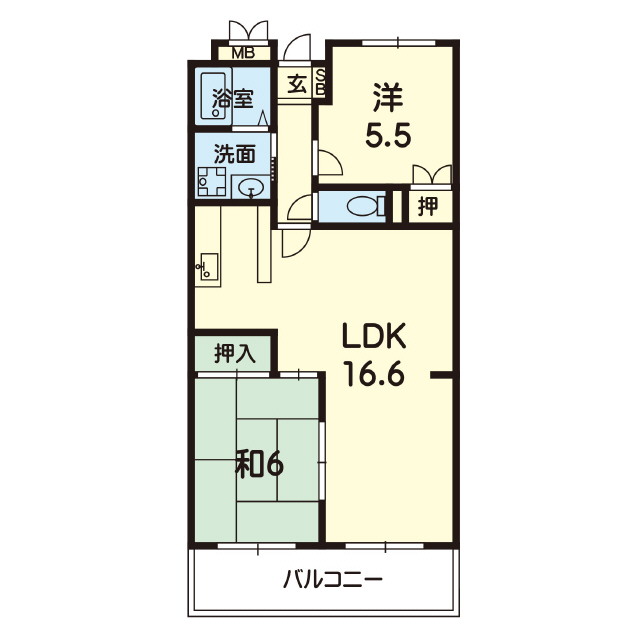 | 間取 | 2LDK ( LDK 16.3帖 / 和 6帖 / 洋 5.5帖 ) |