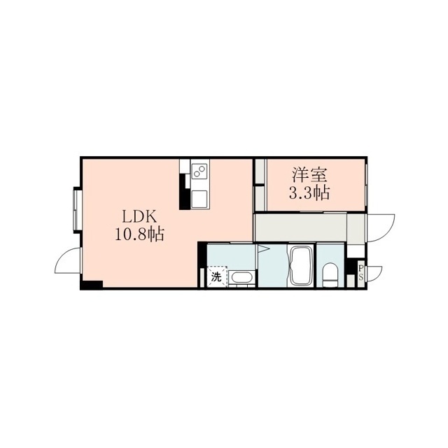 | 間取 | 1LDK ( LDK 10.8帖 / 洋 3.3帖 ) |