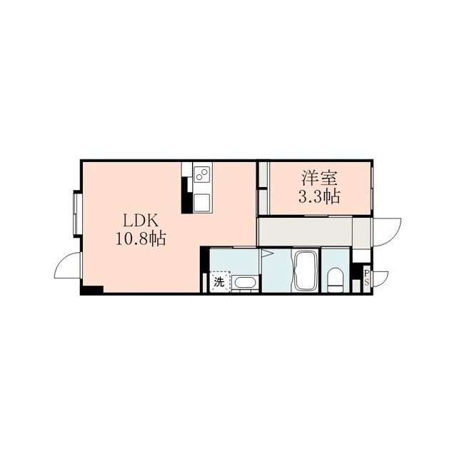 | 間取 | 1LDK ( LDK 10.8帖 / 洋 3.3帖 ) |