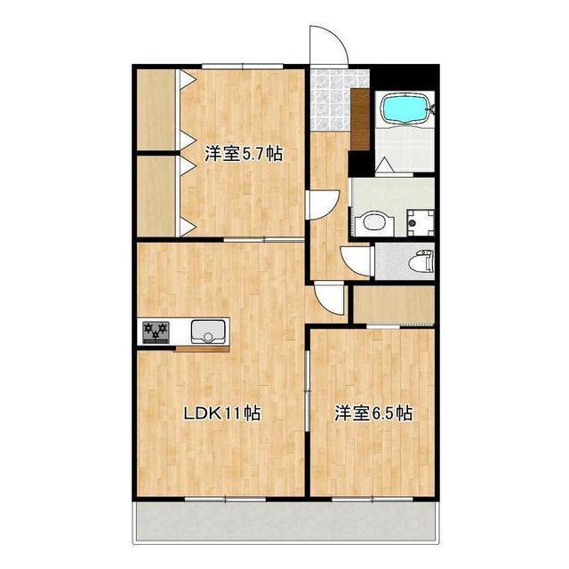 | 間取 | 2LDK ( LDK 11帖 / 洋 6.5帖 / 洋 5.7帖 ) |