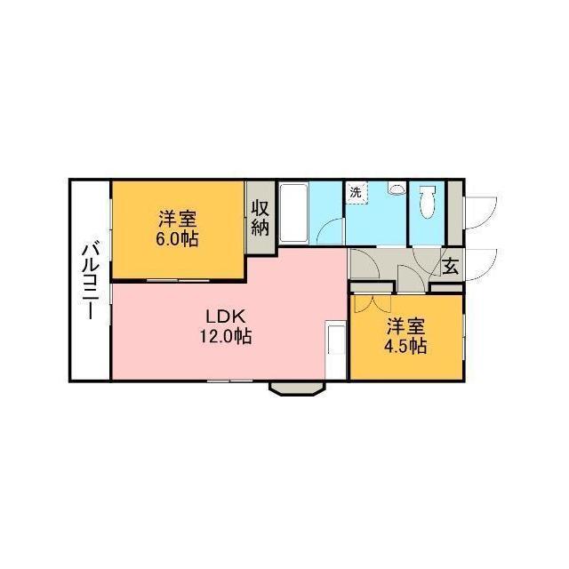 | 間取 | 2LDK ( LDK 12帖 / 洋 6帖 / 洋 4.5帖 ) |