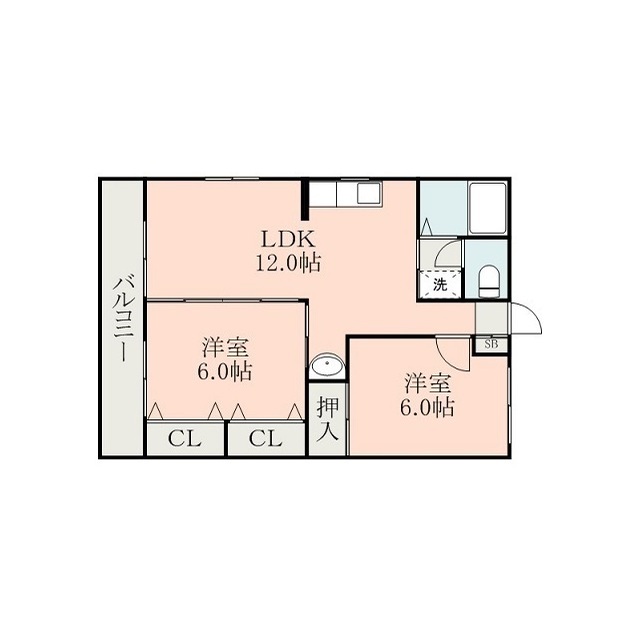 | 間取 | 2LDK ( LDK 12帖 / 洋 6帖 / 洋 6帖 ) |