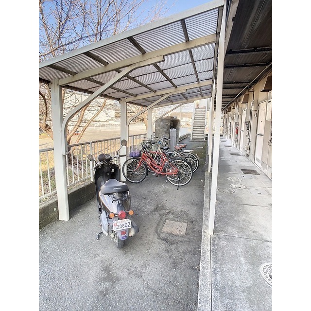 駐輪場 / LPガス / 水道(公営) / 排水(公共下水) / インターネット(NTT) / インターネット(BBIQ) / 地上デジタル / アスファルト舗装 / 屋根無駐車場 / 浴室換気扇 / 給湯(LPガス) / シャワー / 冷暖房 / 室内洗濯置場 / フローリング / 電話設置可 / バルコニー / 専用台所 / ガスコンロ設置可 / 専用浴室(トイレ別) / 専用トイレ(水洗) / クローゼット / チャイム / 間接照明