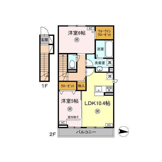 | 間取 | 2LDK ( LDK 10.4帖 / 洋 6帖 / 洋 5帖 ) |