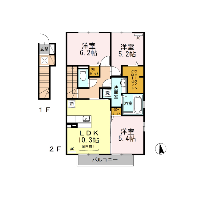 | 間取 | 3LDK ( LDK 10.3帖 / 洋 6.2帖 / 洋 5.4帖 / 洋 5.2帖 ) |