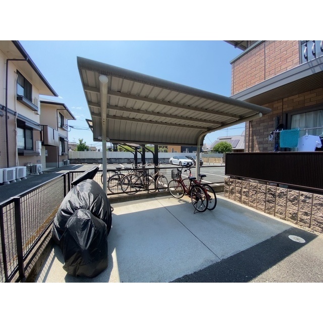 駐輪場 / LPガス / 水道(公営) / 排水(公共下水) / BSアンテナ / 地上デジタル / アスファルト舗装 / 屋根無駐車場 / 給湯(LPガス) / シャワー / 冷暖房 / 照明 / 室内洗濯置場 / フローリング / WINクローゼット / シャンプードレッサー / バルコニー / 専用浴室(トイレ別) / 専用トイレ(水洗) / 洗面(浴室別) / カードキー / 洋間 / シューズボックス / モニター付インターホン(カラー) / 角部屋