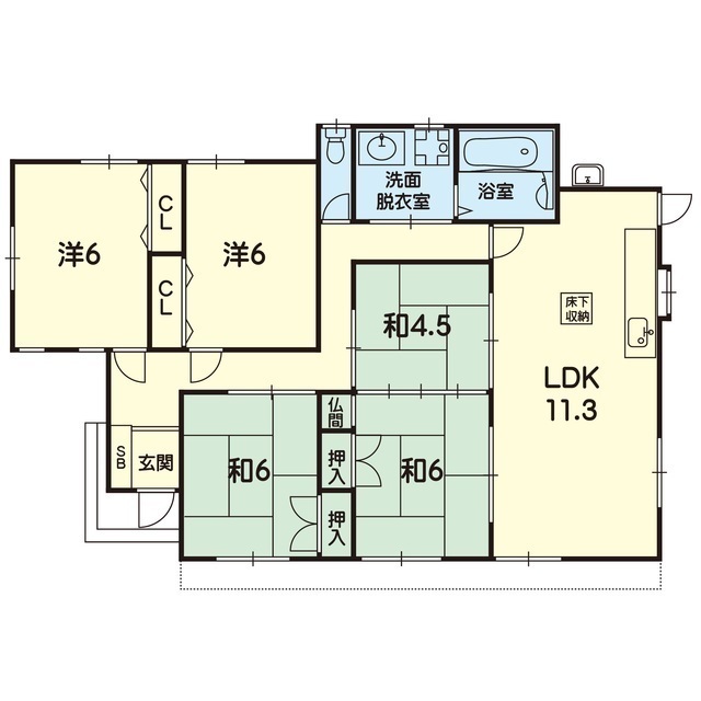 | 間取 | 5LDK ( LDK 11.3帖 / 和 4.5帖 / 和 6帖 / 和 6帖 / 洋 6帖 / 洋 6帖 ) |