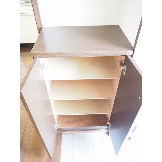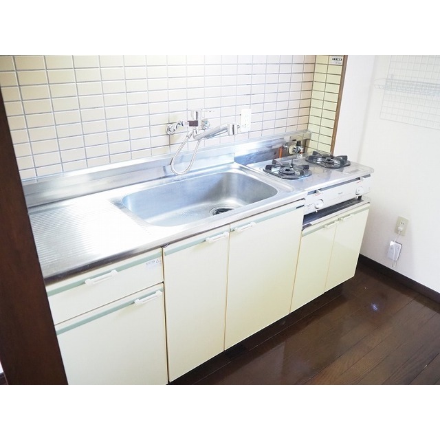 宅配ボックス / 駐輪場 / LPガス / 水道(私営) / 排水(公共下水) / 防犯カメラ / メールBOX(ダイヤル式) / 地上デジタル / インターネット無料(NTT) / 浴室換気扇 / 給湯(LPガス) / シャワー / 冷暖房 / 室内洗濯置場 / フローリング / シャンプードレッサー / バルコニー / 専用台所 / ガスコンロ設置可 / 専用浴室(トイレ別) / 専用トイレ(水洗) / 洗面(浴室別) / クローゼット / シューズボックス / 浴室乾燥機 / チャイム / ウォシュレット / 角部屋 / サーモ水栓