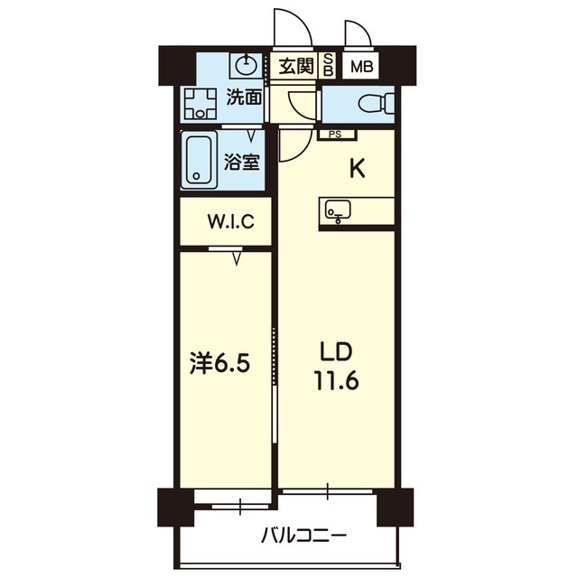 | 間取 | 1LDK ( LDK 11.6帖 / 洋 6.5帖 ) |