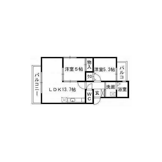 | 間取 | 2LDK ( LDK 13.7帖 / 洋 5.3帖 / 洋 5帖 ) |