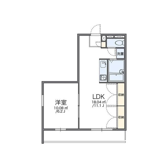 | 間取 | 1DK ( DK 11.1帖 / 洋 6.2帖 ) |