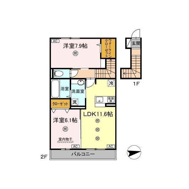 | 間取 | 2LDK ( LDK 11.6帖 / 洋 7.9帖 / 洋 6.1帖 ) |