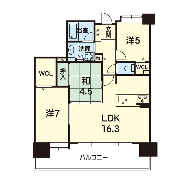 間取 | 3LDK ( LDK 16.3帖 / 和 4.5帖 / 洋 5帖 / 洋 7帖 ) |