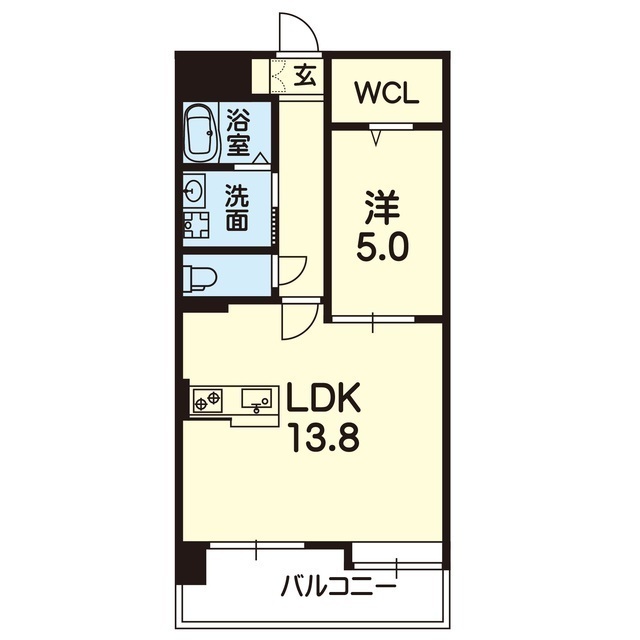 | 間取 | 1LDK ( LDK 13.8帖 / 洋 5帖 ) |