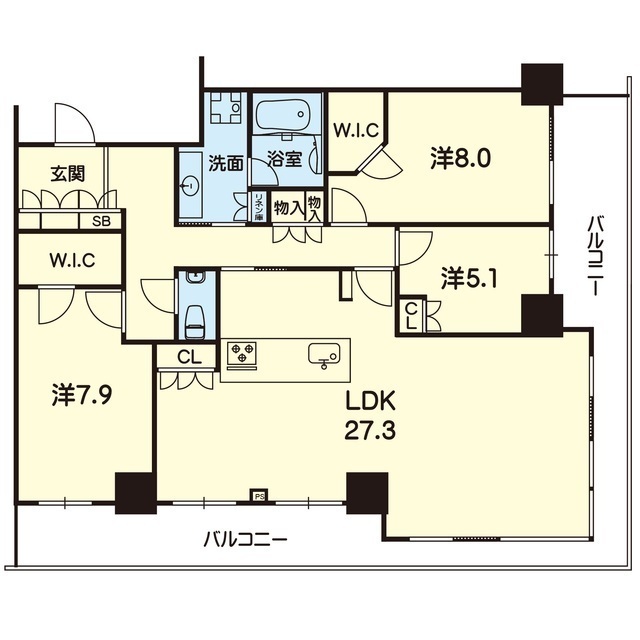 間取 | 3LDK ( LDK 27.3帖 / 洋 8帖 / 洋 7.9帖 / 洋 5.1帖 ) |