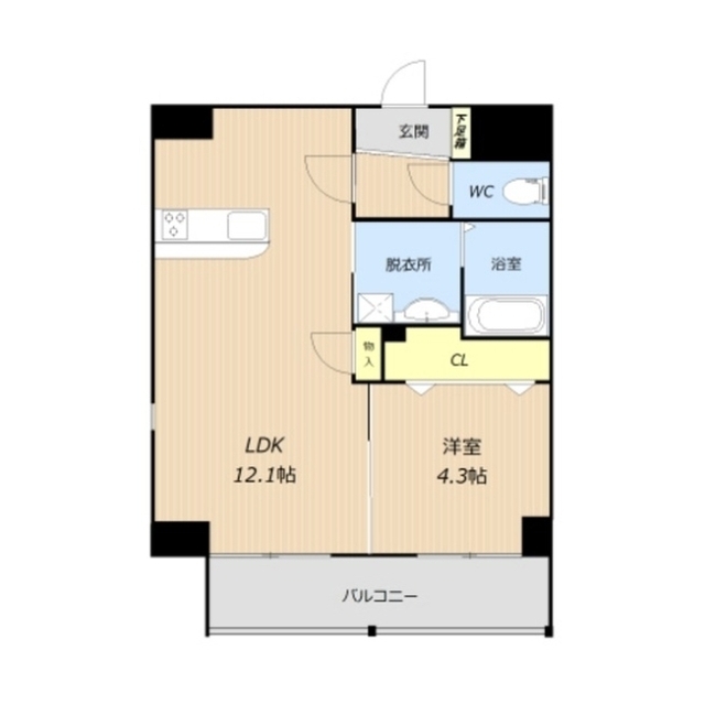 | 間取 | 1LDK ( LDK 12.1帖 / 洋 4.3帖 ) |