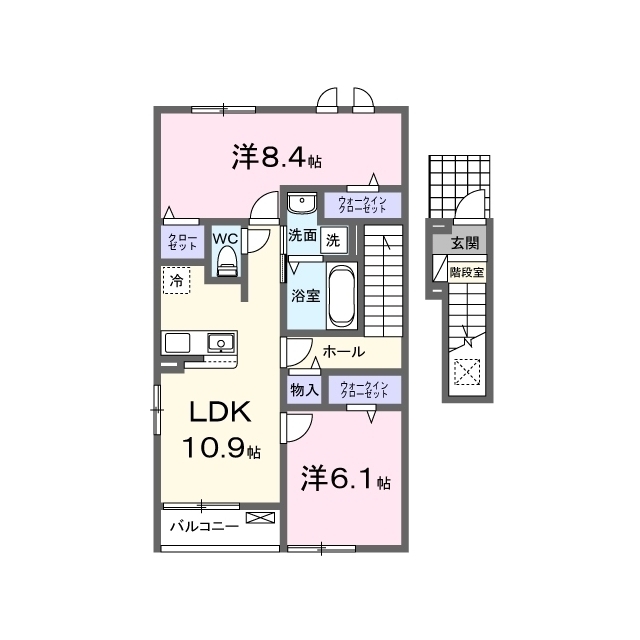 | 間取 | 2LDK ( LDK 10.9帖 / 洋 8.4帖 / 洋 6.1帖 ) |