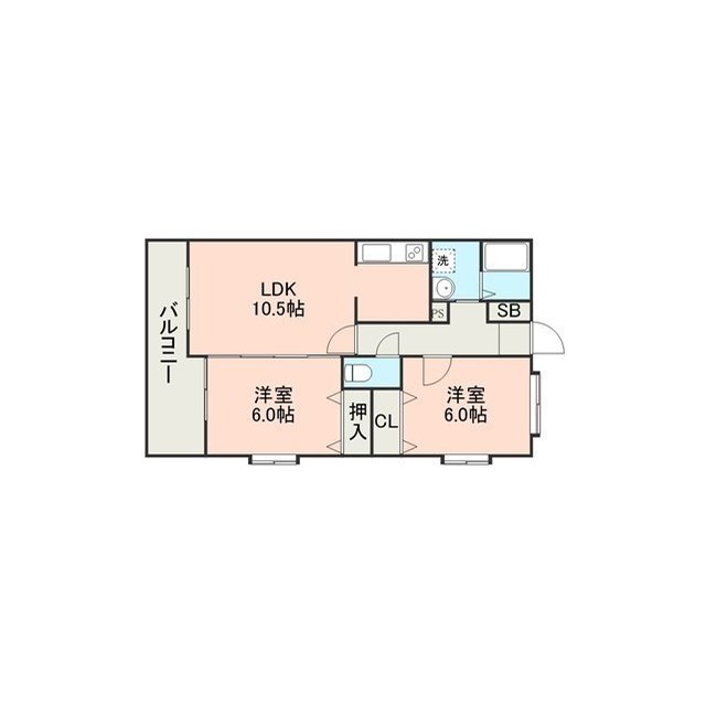 | 間取 | 2LDK ( LDK 10.5帖 / 洋 6帖 / 洋 6帖 ) |