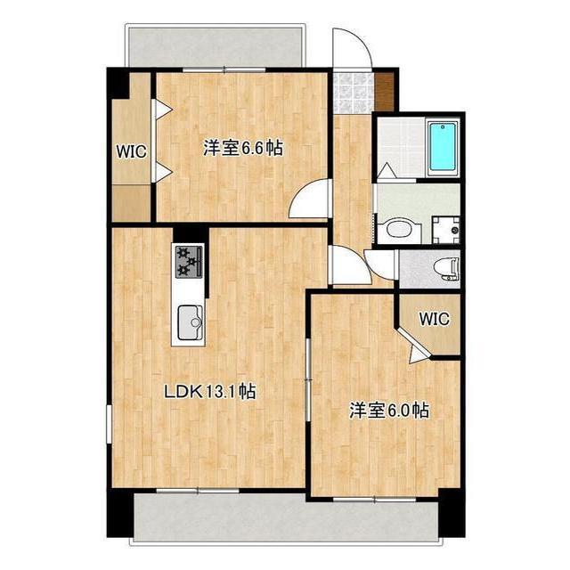 | 間取 | 2LDK ( LDK 13.1帖 / 洋 6.6帖 / 洋 6帖 ) |