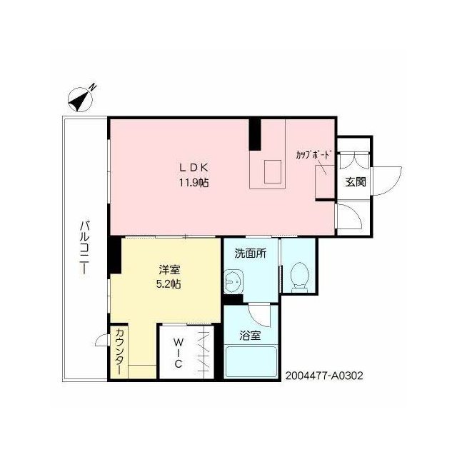 | 間取 | 1LDK ( LDK 11.9帖 / 洋 5.2帖 ) |