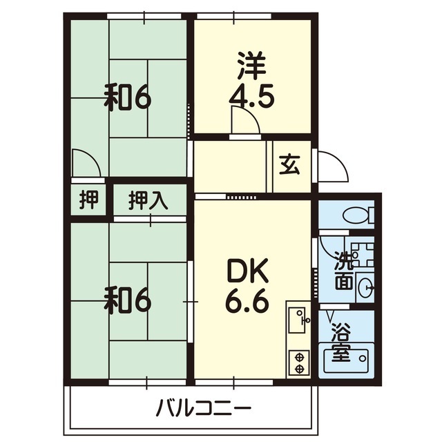 | 間取 | 3DK ( DK 6帖 / 洋 4.5帖 / 和 6帖 / 和 6帖 ) |