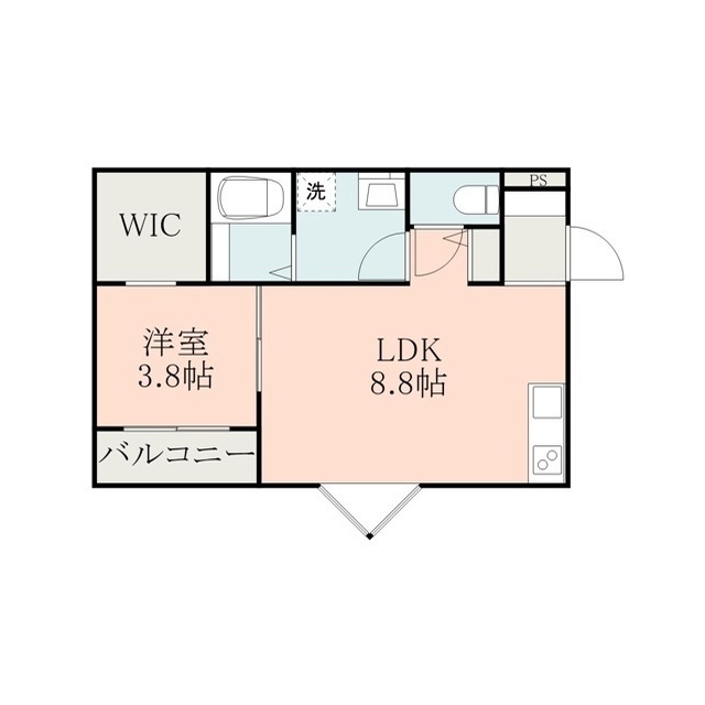 | 間取 | 1LDK ( LDK 8.8帖 / 洋 3.8帖 ) |