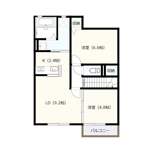 | 間取 | 2LDK ( LD 9.2帖 / K 2.4帖 / 洋 6.6帖 / 洋 4.8帖 ) |