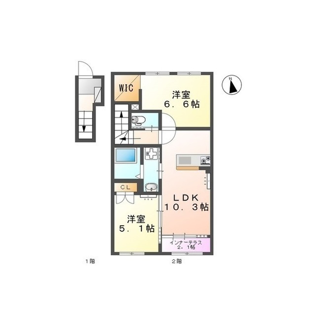 | 間取 | 2LDK ( LDK 10.3帖 / 洋 6.6帖 / 洋 5.1帖 ) |