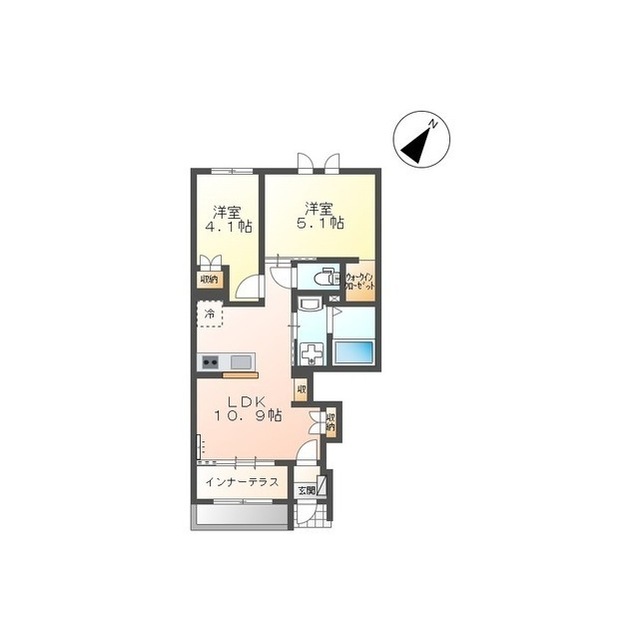 | 間取 | 2LDK ( LDK 10.9帖 / 洋 5.1帖 / 洋 4.1帖 ) |