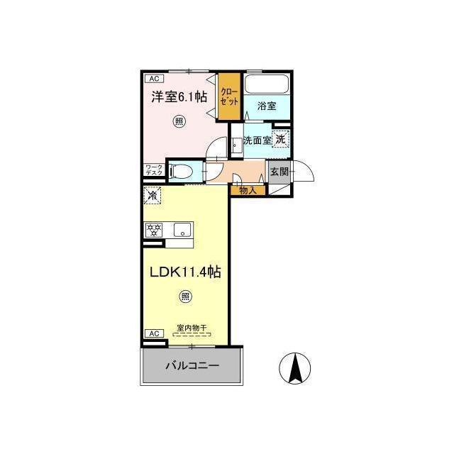 | 間取 | 1LDK ( LDK 11.4帖 / 洋 6.1帖 ) |