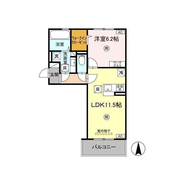 | 間取 | 1LDK ( LDK 11.5帖 / 洋 6.2帖 ) |