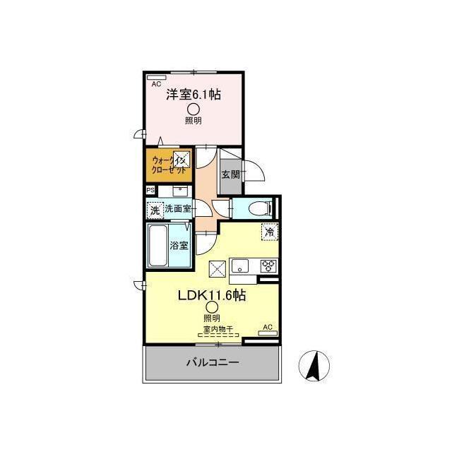 | 間取 | 1LDK ( LDK 11.6帖 / 洋 6.1帖 ) |