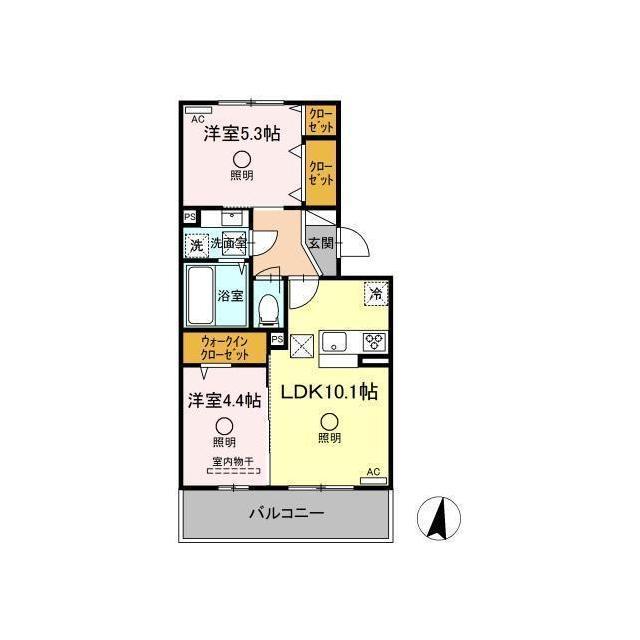 | 間取 | 2LDK ( LDK 10.1帖 / 洋 5.3帖 / 洋 4.4帖 ) |
