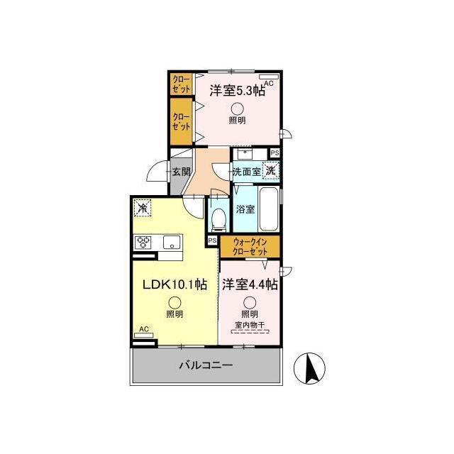 | 間取 | 2LDK ( LDK 10.1帖 / 洋 5.3帖 / 洋 4.4帖 ) |