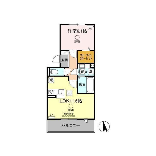 | 間取 | 1LDK ( LDK 11.6帖 / 洋 6.1帖 ) |