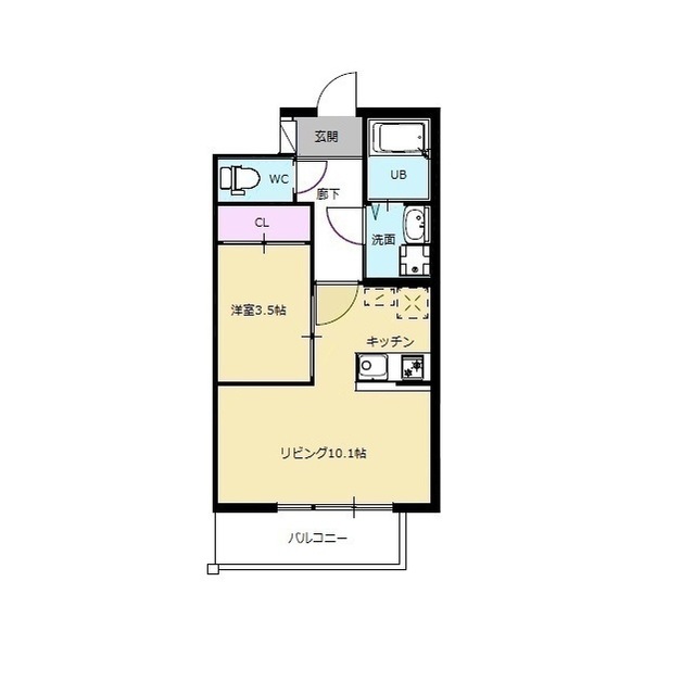 | 間取 | 1LDK ( LDK 10.1帖 / 洋 3.5帖 ) |